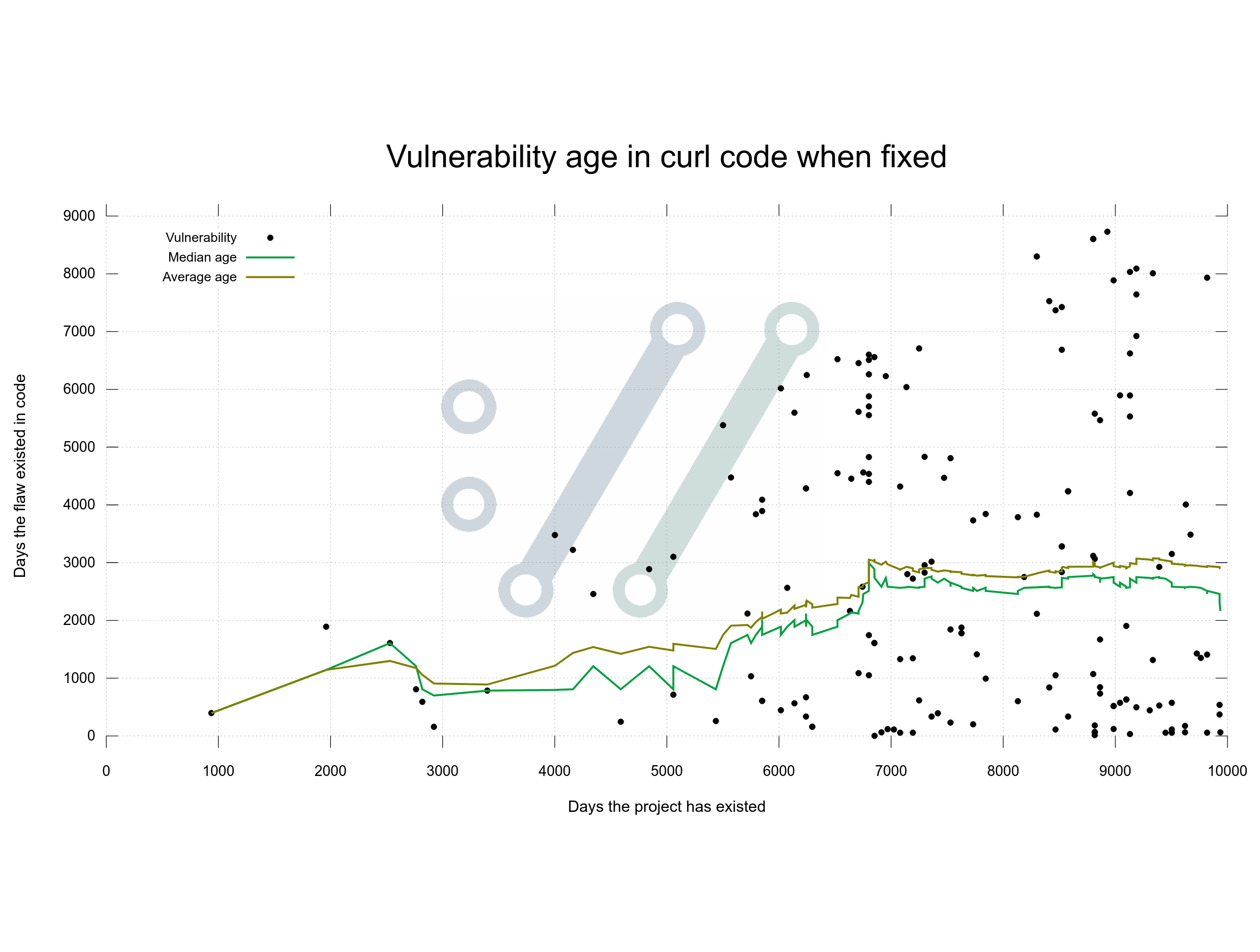 in reply to daniel:// stenberg:// • • •And do we have a graph that shows when a vulnerability was used (first use to beeing fixed) in the x axis and the age of the vuln in the y axis? But I don't expect that we have such data, or so unreliable it's not even useful.
