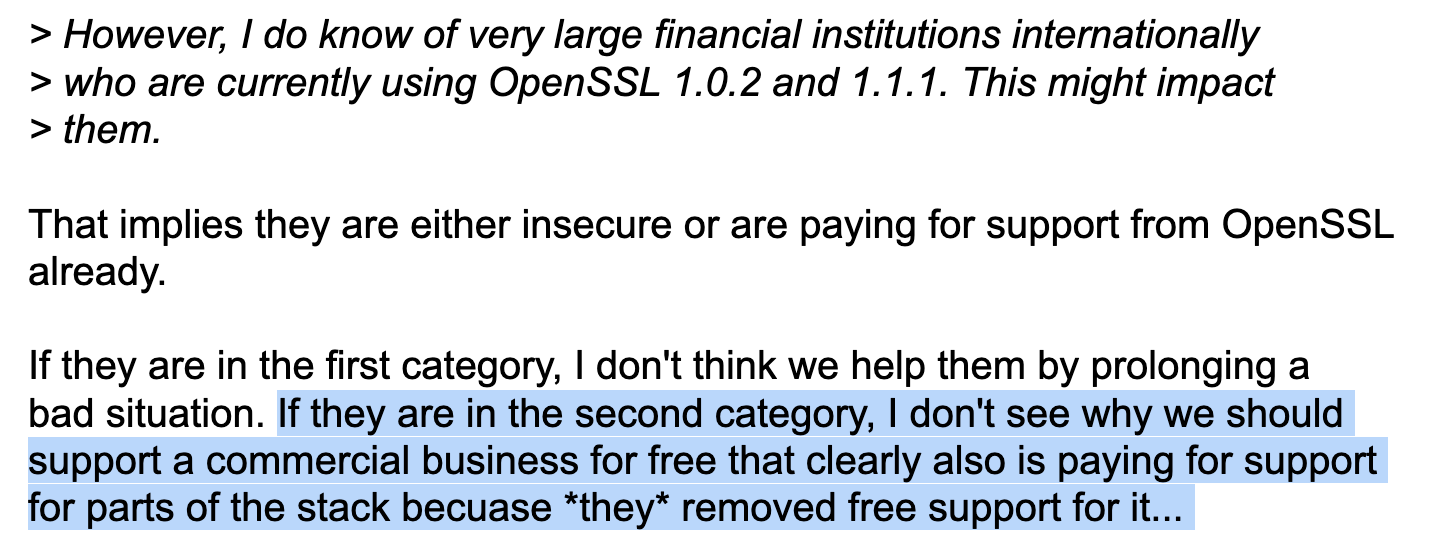 in reply to daniel:// stenberg:// • • •Amazon Linux 2 still ships with OpenSSL 1.0.2! Is 1.0.2 still supported by curl?