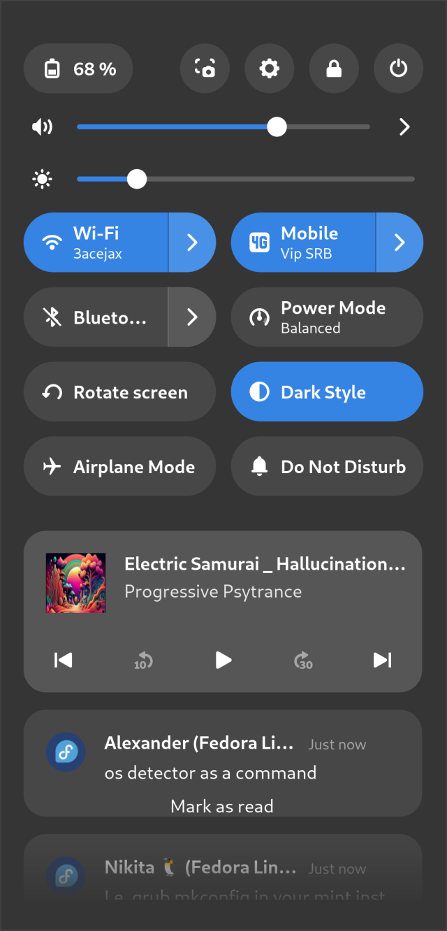 Марко Пејовић 1 year ago • • Марко Пејовић 1 year ago • • #postmarketos #gnomemobile #pmos #mobilelinuxGnome-Mobile: lock screen, quick settings and screenshot tool. #postmarketos #pmos #MobileLinux #gnomemobile Languages Search Text Share via ...