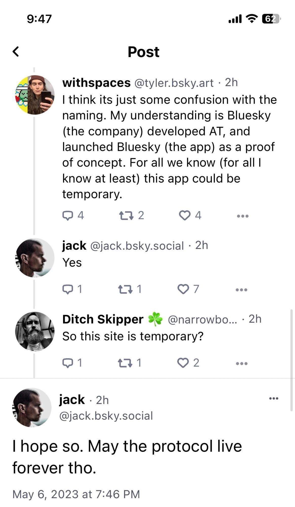 Unknown parent • • •How can Bluesky be the future when Jack Dorsey says it’s “temporary”?