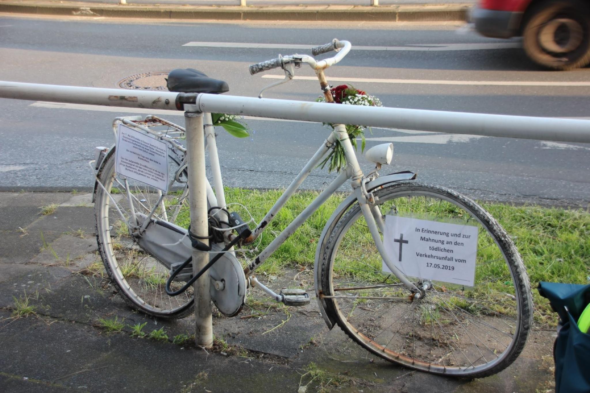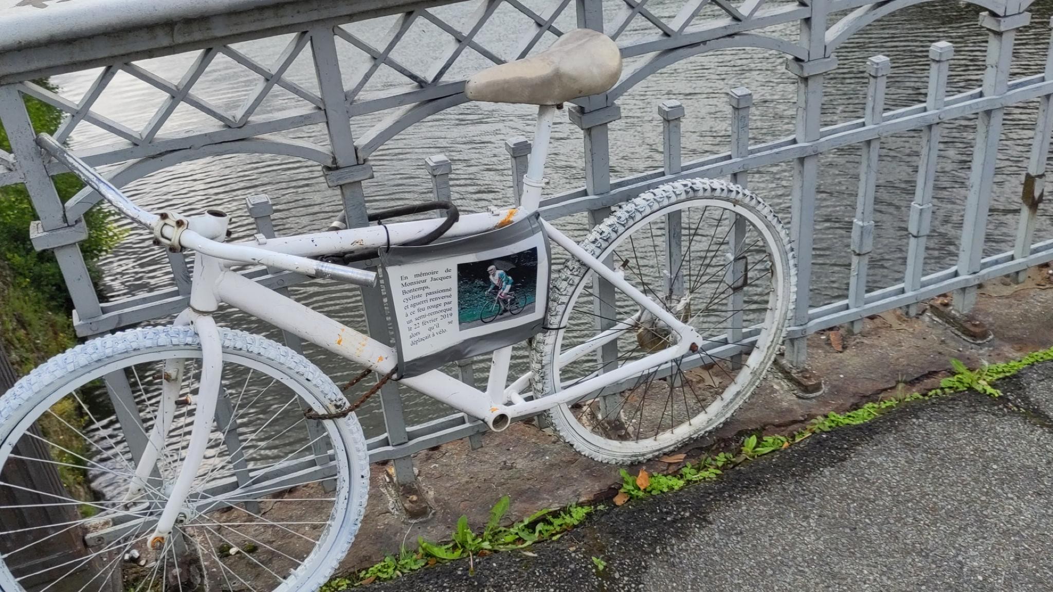 A ghost bike is a memorial for a cyclist who died in a traffic accident, in the form of a white bicycle placed permanently near the accident location