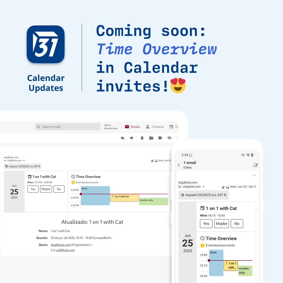 The main selling features I'm looking for are #E2EE interoperability with such competitors as @protonprivacy and @mailbox_org, and a shared non-proprietary API to locally bridge Tuta and competitors with common desktop mail, contacts, and calendar apps.