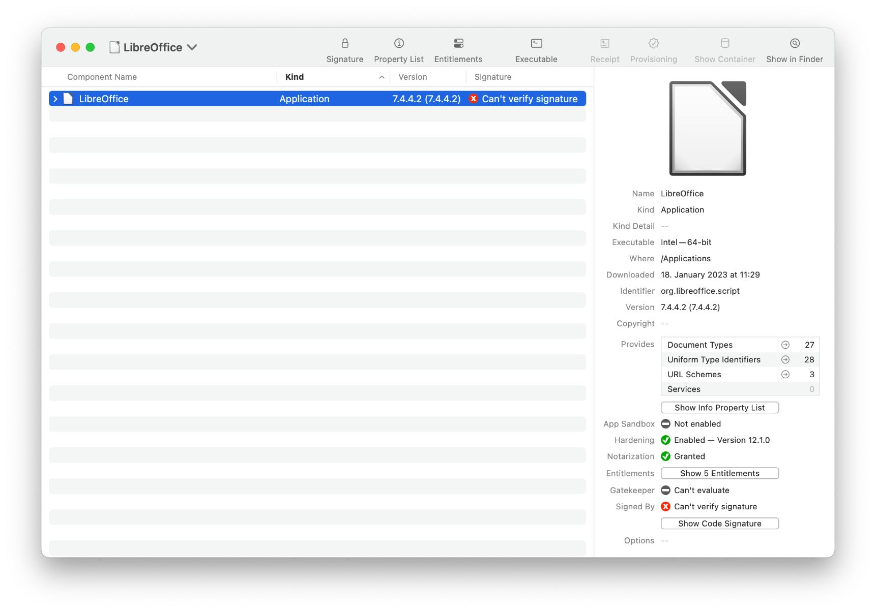 in reply to LibreOffice • • •NB- system requirements, from the downloads page, says MacOS 10.12. But 7.4 release notes says 10.13.