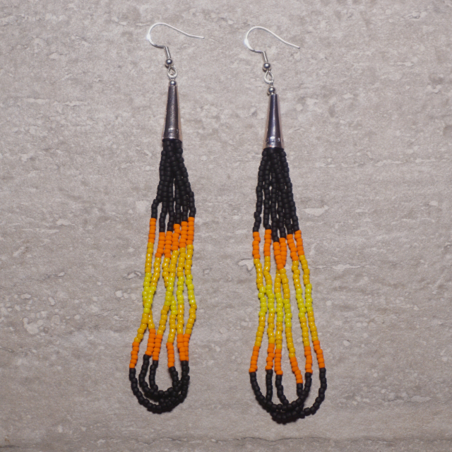Black Orange Beaded Loop Earrings