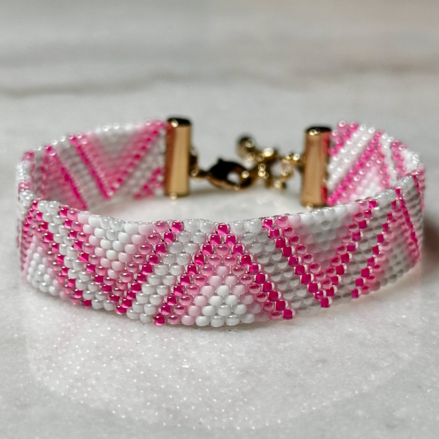 Hot Pink Dreams Triangle Peyote Stitch Beaded Bracelet