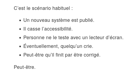 Personne ne le teste avec un lecteur d’écran.
