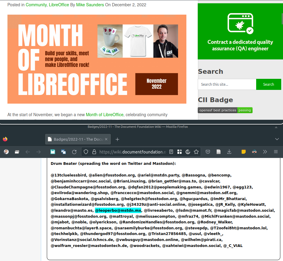 OMG! I'm in the Ꭰɾմʍ βҽąէҽɾ winners list for the" Month of LibreOffice, November 2022", awarded by @libreoffice, for "spreading the word on Twitter and Mastodon"