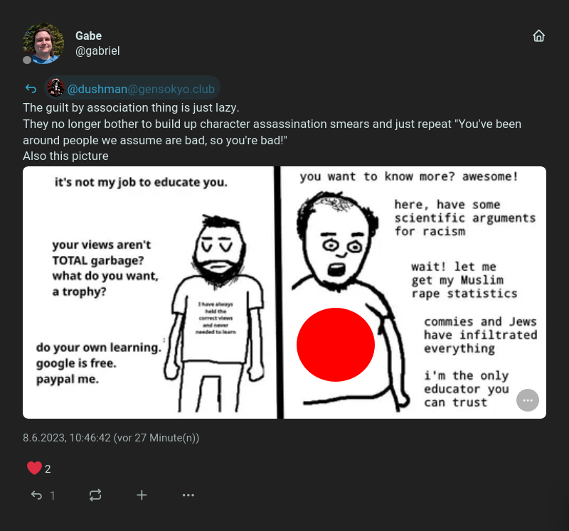 This account is still up on mstdn.party and currently defending fucking Kyle Rittenhouse. Check the replies.