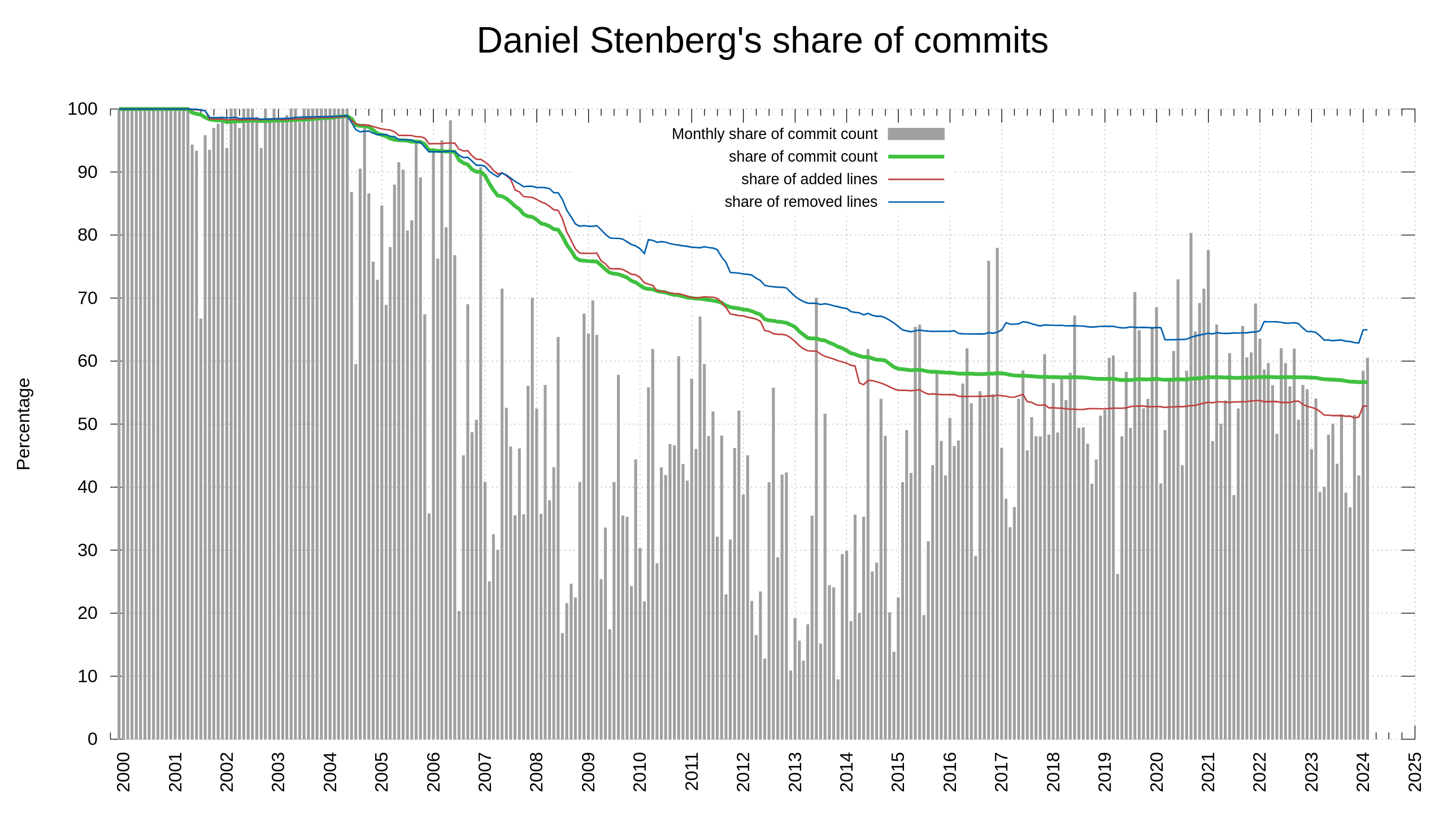 Lines of code per author + contributor