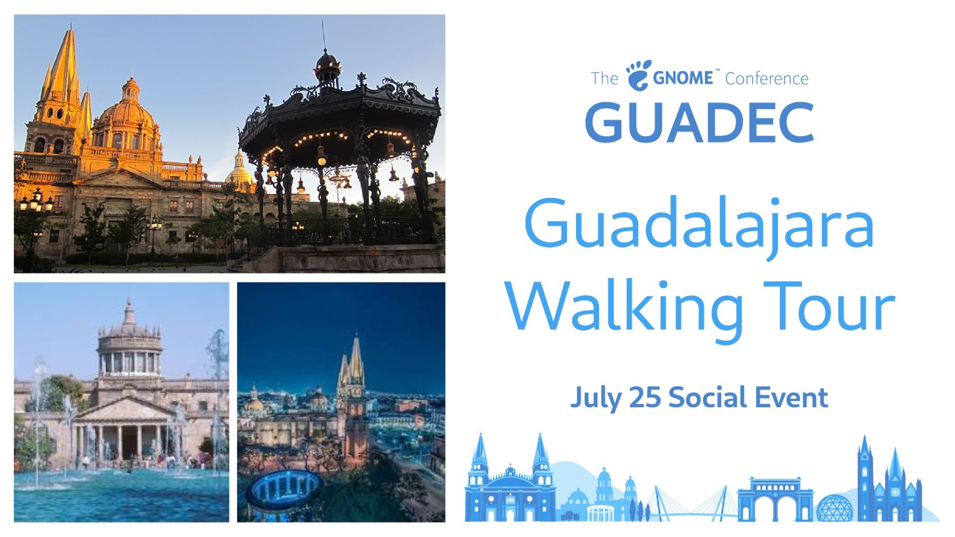 We've organized another social BoF option for our finally #GUADEC2022 day! Join us for a group walking tour of many popular sights in the historical center of Guadalajara. See details about the itinerary, cost, and how to register by July 15: events.gnome.org/event/77/page…