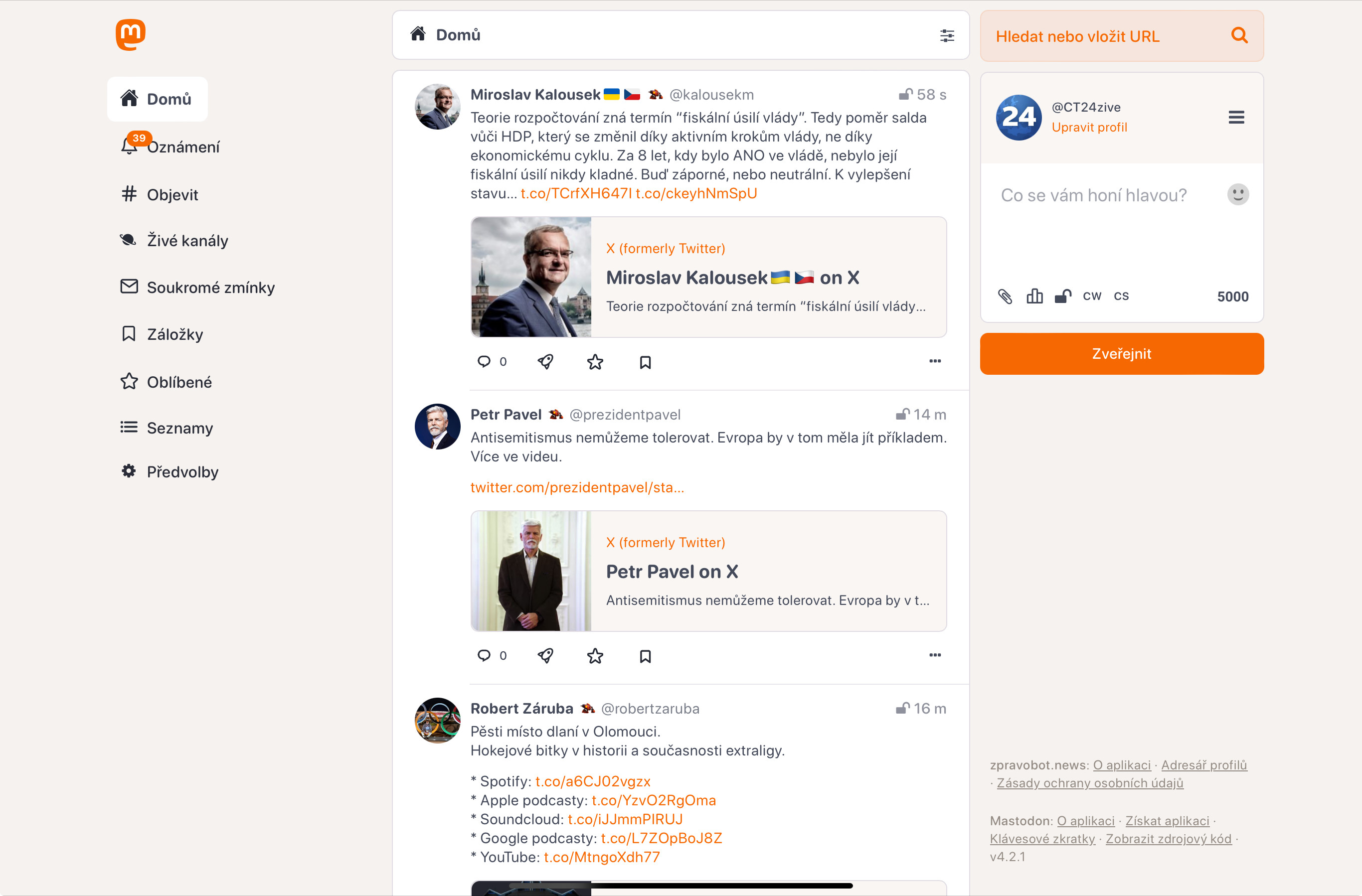 Nevím, zda o tom víte, ale je k dispozici Tangerine UI - alternativní skin pro webový klient, který hodně přibližuje Mastodon k Xku a je pro nově příchozí mnohem přívětivější.