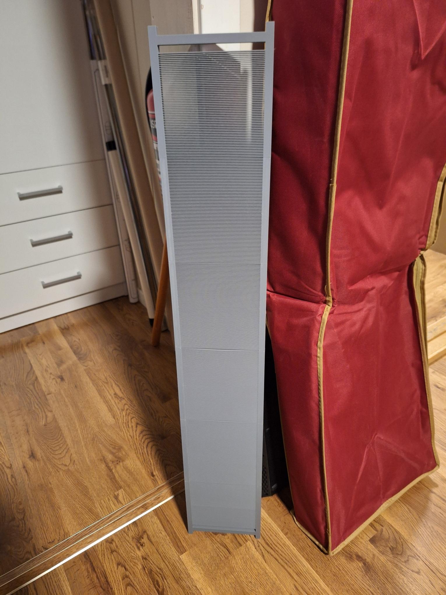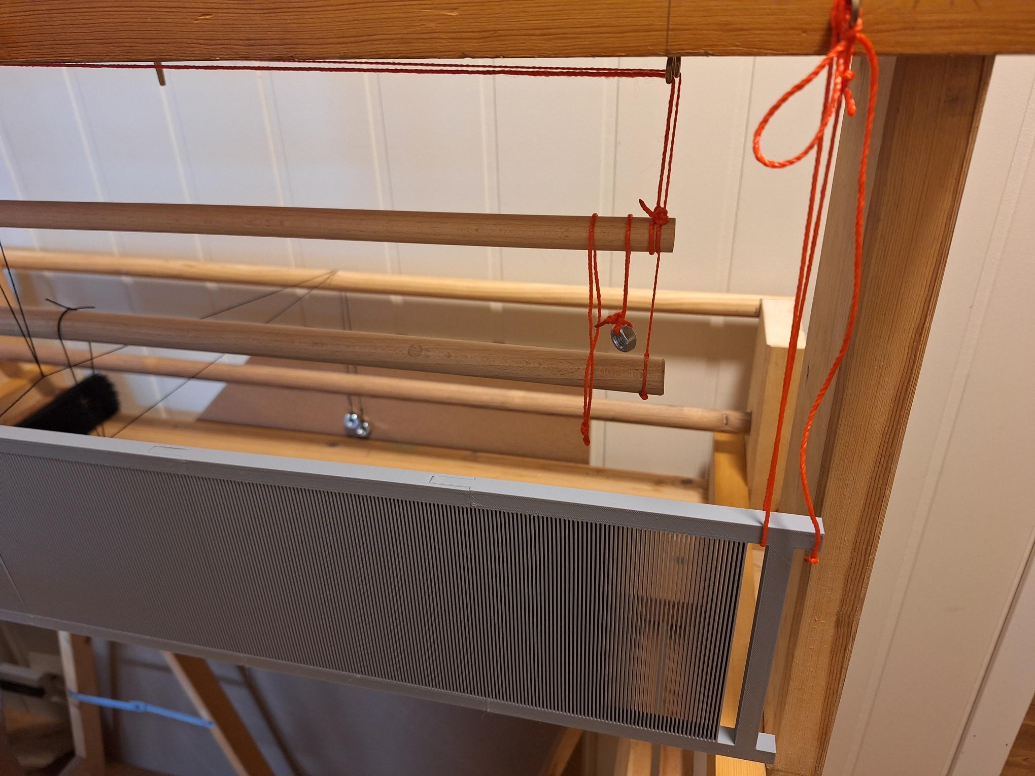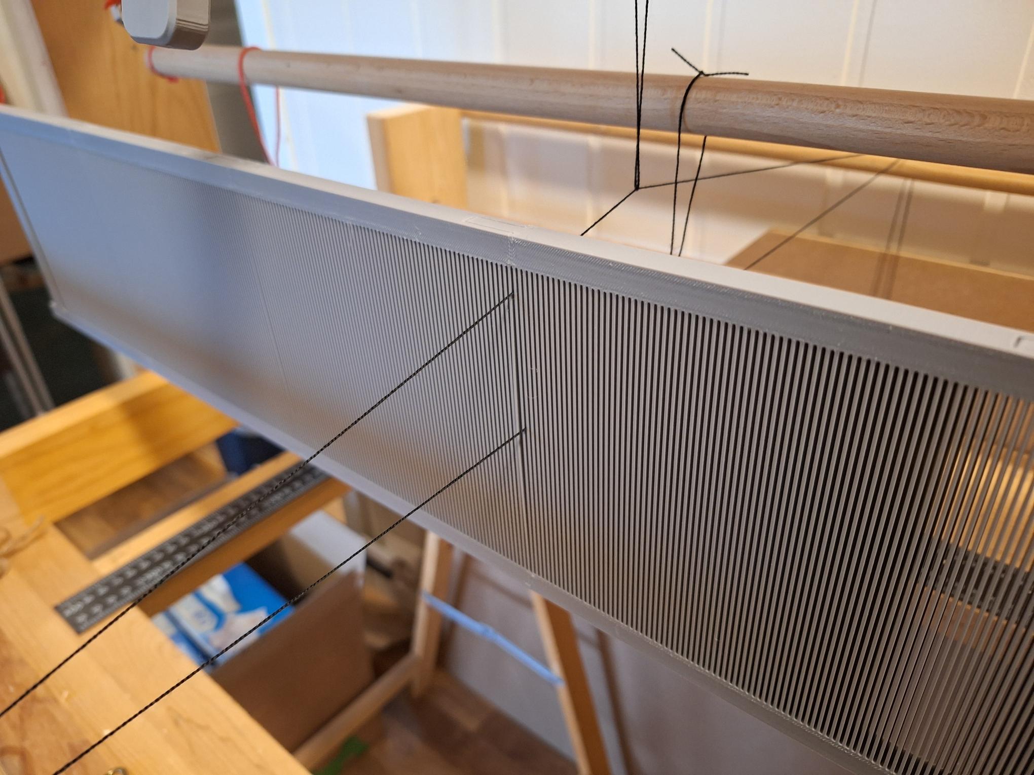 The Reed is 1mm pitch ribs and gaps. (I tried 0.5mm but it failed. The ribs stuck together in places). Hopefully 1mm will still give a nice weave. :v