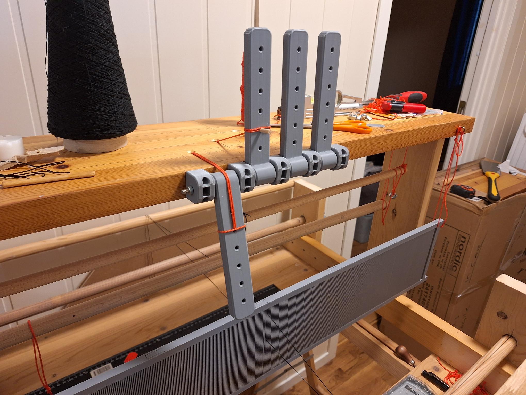 #freecadfriday my printer is currently printing the 5th of 6 segments that make up the Reed/beater of my loom. The segments were designed in @FreeCAD to slot together. One end segment, and one mid segment. So 2 ends, and 4 mids needed for my loom. More or less mids can be printed depending on size needed.