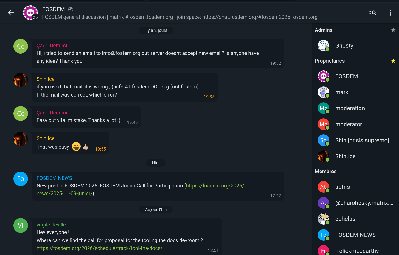And with the awesome work done with @nicoco on #Slidge the Discord, Telegram and WhatsApp roles are now also displayed in Movim properly 👌