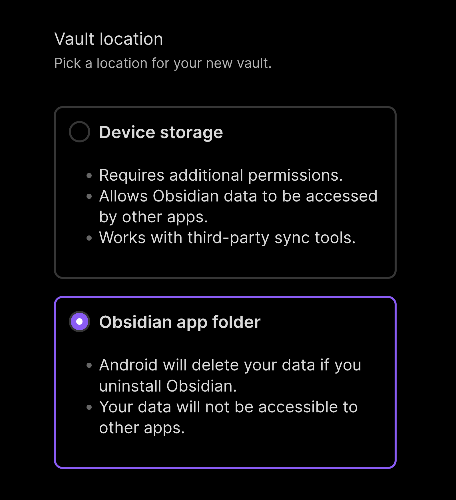 currently #Obsidian for Android requires full file access permissions because it's necessary for certain third-party sync tools and interoperability — but some users prefer narrower permissions