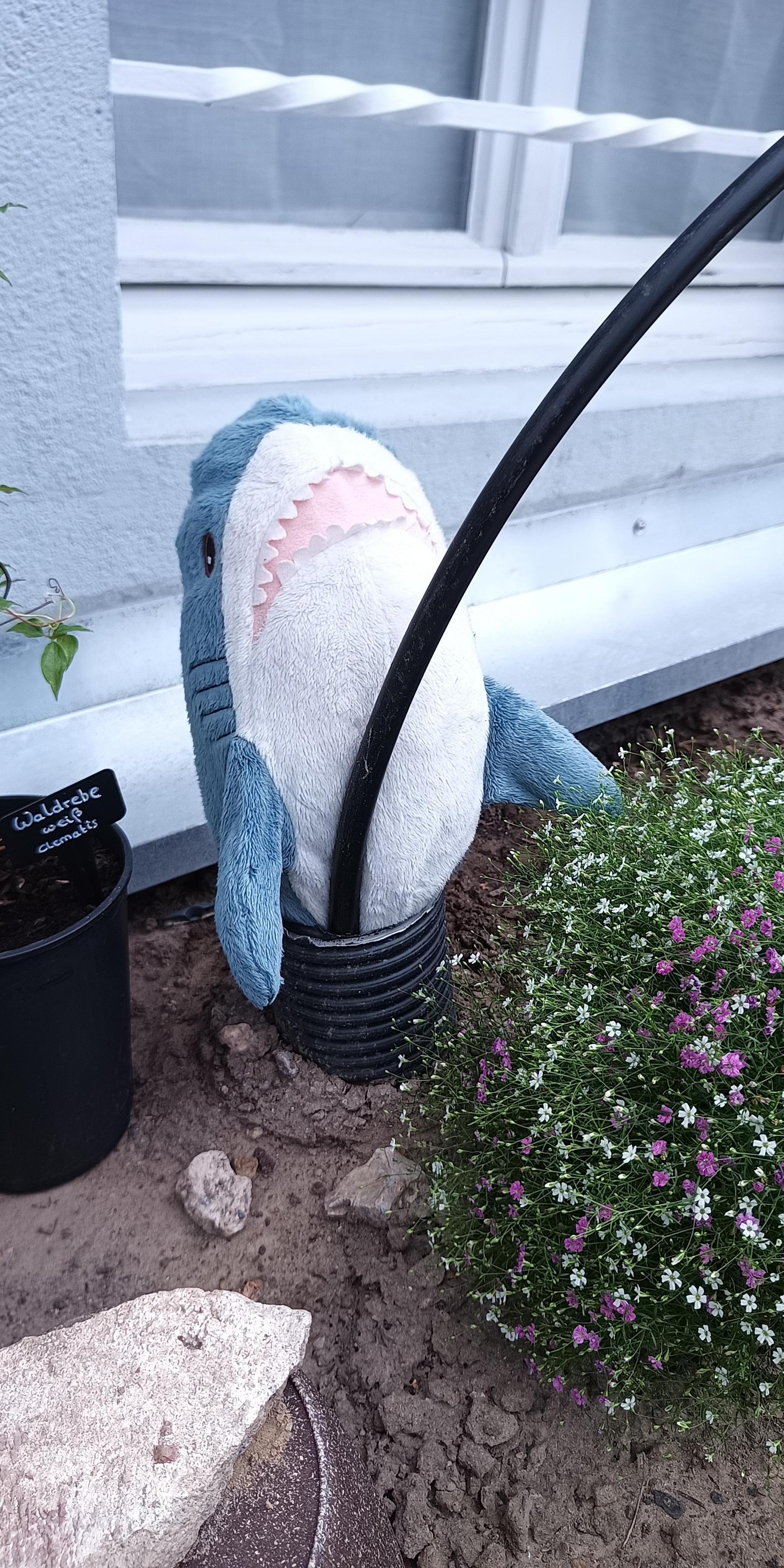 Someone at #bornhack had the idea of cleaning cable ducts with Blåhaj and i can tell you Blåhaj is not amused