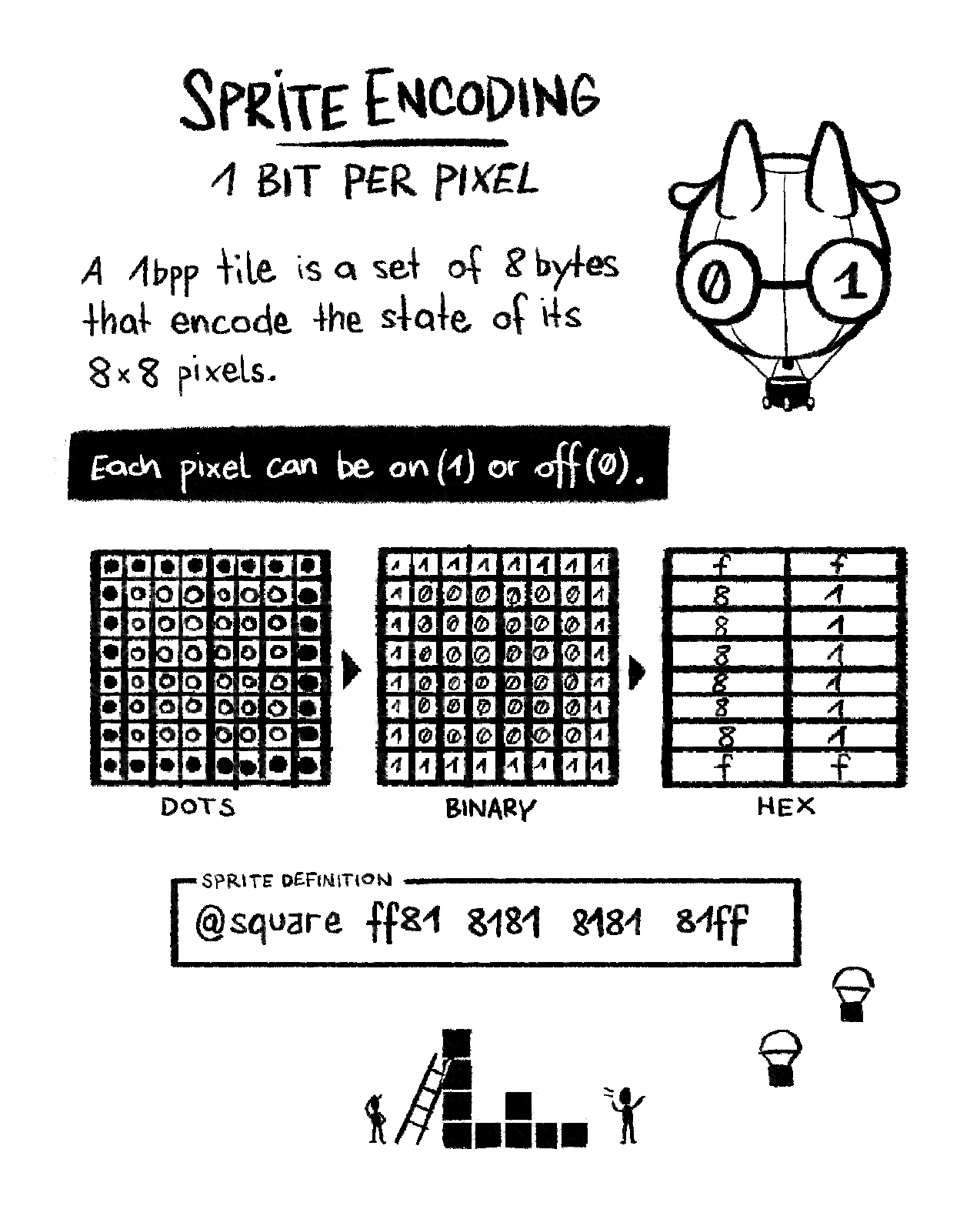 In includes a hexadecimal finger-counting scheme, and bitwise gestures, that we hope will be useful for anyone familiarizing themselves with binary.